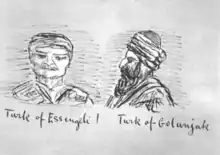 A comparative sketch by Mark Sykes of a Turk from Hasancalı (to the left) and a Turk from Kuluncak.