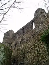 In 1284 King Edward I and Queen Eleanor of Castile visited the castle for the first time during a royal pilgrimage to St Davids. Eleanor was said to be in love with the castle. Four years later she borrowed a huge amount of money in those times to purchase the castle from the de Bohun family and loaned £407 (an extreme amount in those days) to fully rebuild the castle and complete its transition fully into stone.[1] A massive scale reconstruction took place, and it was completed a year later in 1290, shortly before she died, although it long became known as the "Queen's Castle at Haverford".[5] Today much of what remains is dated to Queen Eleanor's 1290 version, including the extensive curtain wall.[5] The castle remained in Royal possession after Eleanor's death and it was granted out to various wealthy tenants.[1] In the 14th century, the castle was occupied by many owners, amongst them was Edward, the Black Prince, from 1359 to 1367. The castle was owned by the crown from 1381 to 1385, who paid for restoration works of the castle. These works proved important later, as in 1405 the castle was strong enough to fend off an attack during Owain Glyndŵr's War of Welsh independence.[5] The town walls around the high ground near the castle also did much to protect the castle from invaders, although nothing remains of these town walls today. Over the centuries the castle was visited by numerous nobles and monarchs such as King Richard II and Oliver Cromwell.[6]