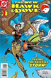 Hawk and Dove are a superhero team appearing in American comic books published by DC Comics. Created by Steve Ditko and Steve Skeates, they appeared in Showcase #75 (June 1968) during the Silver Age of Comic Books.[2] The duo has existed in multiple incarnations over the years across several eponymous ongoing series and miniseries, and has also appeared in a number of recurring roles and guest appearances in titles such as Teen Titans, Birds of Prey, and Brightest Day. The duo originated as teenage brothers Hank Hall as Hawk and Don Hall as Dove. Following Don's death in Crisis on Infinite Earths (1985), Dawn Granger assumed the role of Dove in Hawk & Dove #1 (October 1988). The mantle of Hawk would later be taken up by Dawn's sister Holly Granger in 2003 after Hank was killed during 1994's Zero Hour: Crisis in Time! until her death and Hank's resurrection in Blackest Night (2009). An unrelated team consisting of military cadet Sasha Martens as Hawk and rock musician Wiley Wolverman as Dove also appeared as the focus of a 1997 miniseries. The pairing of Hank and Dawn serve as the current and most commonly published incarnation of the team.