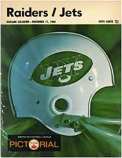 The Jets and Raiders were founding members of the American Football League; both teams began to play in 1960, the Jets under the name Titans of New York.[2] The two teams had little success in their early years, playing so poorly that both the Titans and Raiders were allowed to draft players from other AFL teams following the 1962 season.[3] In 1967, the Jets, under the guidance of coach Weeb Ewbank and third-year quarterback Joe Namath, posted their first winning record at 8–5–1.[4] Oakland, on the other hand, won the Western Division in 1967 with a 13–1 mark under coach John Rauch and then the AFL Championship Game over the Houston Oilers, 40–7, but fell to the Green Bay Packers in Super Bowl II.[2] Both teams were seen as likely contenders for the 1968 AFL Championship.[5]