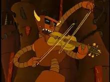 The Robot Devil playing the solid gold fiddle