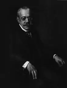 Henri James Simon was born in Berlin, the son of a well-off Jewish cotton merchant. He attended the Berlinisches Gymnasium zum Grauen Kloster and received a six-month traineeship at Bradford, then a centre of textile manufacture, before he became a partner with his father in 1876. Though a reserved man, he played an influential role in the German society, especially by his participation at a regular roundtable with Emperor Wilhelm II. Simon and other invitees like Albert Ballin and Carl Fürstenberg as well as Emil and Walther Rathenau discussed economic life and tried to give the emperor an understanding of a Jewish perspective on social issues. Their close relationship with the erratic ruler was criticized by Zionist contemporaries and they were later mocked as the "Emperor's Jews" (Kaiserjuden) by Chaim Weizmann.[1]