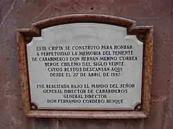 - ↑ "HOMAGE TO LIEUTENANT HERNÁN MERINO CORREA - Huellasdigitales.cl". Archived from the original on March 4, 2016. Retrieved December 19, 2008.
