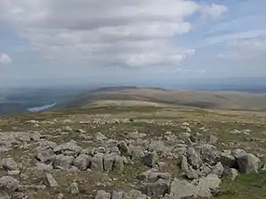 The summit of High Raise is stony, particularly in comparison to its neighbours, and a large cairn has been raised up a few yards east of the Roman road. The views westward provide a fine Lakeland panorama.[1]