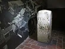 In 1842, the planned terminus location was moved, four blocks southeast (two to three blocks southeast of Five Points), to what would become State Square, on Wall Street between Central Avenue and Pryor Street. (33°45.141′N 84°23.317′W / 33.752350°N 84.388617°W / 33.752350; -84.388617 (Zero milepost marker)). At this location, the zero milepost can now be found, adjacent to the southern entrance of Underground Atlanta.[13] As the settlement grew, it became known as Terminus, literally meaning "end of the line". By 1842, the settlement at Terminus had six buildings and 30 residents.