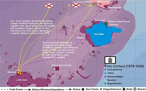 The Yakans, an inland pagan tribe, inhabited the Sulu Archipelago together with the indigenous Sama and Bajau before the ethnically Visayan Tausug, originally from northeastern Mindanao, started migrating into the region from around the 11th to 13th century.[3][4]