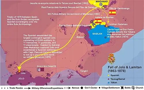 - July 22, 1878 - Treaty of Peace between the Spanish government and the Sulu Sultan again ceded all remaining sovereignty previously enjoyed by the Sultan over the entire Sulu Archipelago to the Spanish crown