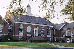 The Industrial Institute and College of Louisiana named Colonel Arthur T. Prescott as the institute's first president in 1894.[7] Colonel Prescott, the former commandant of the student cadet organization at the University of Virginia, moved to Ruston to oversee the establishment of the industrial institute in Ruston. After the school secured $20,000 from the Louisiana Legislature, Lincoln Parish, and the City of Ruston and twenty acres of land through a donation by Francis P. Stubbs, Prescott led the school's efforts to construct the first buildings on the Tech campus.[8] The first building constructed on the Tech Campus, The Old Main Building, was a two-story brick building that contained eight large classrooms, an auditorium, chemical laboratory, and two offices. Prescott also set aside a reading room in the Old Main Building furnished with tables, chairs, and 125 books donated from his own personal collection to serve as the school's first library[9] A frame building was also built near the Old Main Building to be used for the instruction of mechanics. In 1898, Hale Hall was constructed as a two-story girls dormitory.[10]