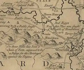 The site of the battle, Humbleton Hill, is now located within the Northumberland National Park. The hill contains the remains of an Iron Age hillfort at the summit, built some 1500 years before the battle. During the medieval period the sides of the ruined fort were apparently used for summer settlements and sheep shelters.