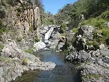 Hot Spring Canyon is a drainage located in the Cleveland National Forest in the Orange, Riverside and San Diego counties of California. The mountainous region is known locally as the Santa Ana Mountains. The canyon is formed by Hot Spring Creek, a major tributary of San Juan Creek watershed. Hot Springs Creek is known for its many waterfalls and swimming holes.