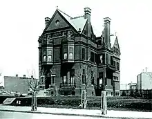 There were also smaller homes built around Scott Circle, including a Victorian building on the southwest corner rented by Alexander Graham Bell in 1883 which housed his Bell Experimental School.[16] A large home built south of Scott Circle in 1886 was for Lucius Tuckerman, whose Richardsonian Romanesque house on the southwest corner of 16th and I Streets was designed by Hornblower & Marshall.[16] North of Scott Circle larger homes built during this period include the Richardsonian Romanesque 1623 16th Street, built in 1886 and designed by Albert W. Fuller, and 1401 16th Street, a similar style house built in 1888 which later served as the residence of Vice President James S. Sherman.[14][17]
