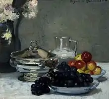 Beaumont produced work in the "intimiste" style which often depicted bourgeois settings. The term was coined by Édouard Vuillard who used it to describe his own style.[2] Other practitioners include Maurice Lobre, René Georges Hermann-Paul, Henri Matisse, Rene Prinet and Ernest Laurent. The Intimists first collective exhibition was shown at Henry Grave's galleries in 1905.[3] The exhibition included several works by Hughes de Beaumont.