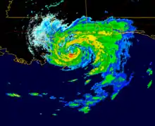 ![]() Danny at peak intensity making landfall in Louisiana on July 19 | |