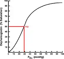 The binding affinity of hemoglobin to oxygen is estimated using a measurement called P50 (the partial pressure of oxygen at which hemoglobin is 50% bound with oxygen) and can be extremely variable.[70] If the hemoglobin has a weak affinity for oxygen, it is said to have a high P50 and therefore constrains the environment in which a fish can inhabit to those with relatively high environmental PO2. Conversely, fish hemoglobins with a low P50 bind strongly to oxygen and are then of obvious advantage when attempting to extract oxygen from hypoxic or variable PO2 environments. The use of high affinity (low P50) hemoglobins results in reduced ventillatory and therefore energetic requirements when facing hypoxic insult.[65] The oxygen binding affinity of hemoglobin (Hb-O2) is regulated through a suite of allosteric modulators; the principal modulators used for controlling Hb-O2 affinity under hypoxic insult are: