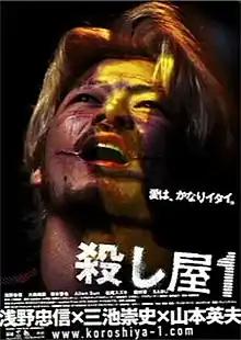 Ichi the Killer (Japanese: 殺し屋1, romanized: Koroshiya Ichi, lit.'Hitman One') is a 2001 Japanese yakuza film directed by Takashi Miike, written by Sakichi Sato, and starring Tadanobu Asano and Nao Omori. Based on Hideo Yamamoto's manga series of the same name, its plot follows a psychologically damaged man who is manipulated into assaulting or killing rival faction members of feuding yakuza gangs while being pursued by a sadomasochistic enforcer.