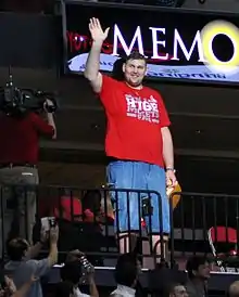 ![]() Vovkovinskiy waves to the crowd at a basketball game in Houston in 2013 | |
