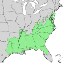 | Natural range of Ilex opaca | |