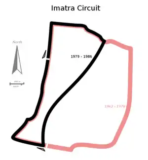 The Imatra Circuit is a motorsport street circuit in Imatra, Finland. The circuit has existed in two versions, and has been exclusively used for the "Imatranajo" motorcycle road race. From 1962 to 1978 a 6.030 km (3.747 mi) clockwise street circuit in the east of the town of Imatra was used. The circuit ran along the Vuoksi river and a railway line that had to be crossed. From 1979 to 1986 a shorter circuit was used. This was only 4.950 km (3.076 mi) long and consisted mostly of the western part of the original circuit.