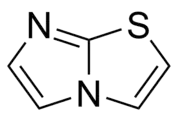 Imidazothiazoles are a class of chemical compounds containing a bicyclic heterocycle (a double ring system) consisting of an imidazole ring fused to a thiazole ring.[1] The structure contains three non-carbon or heteroatoms: two nitrogen atoms and one sulfur atom. Imidazothiazole derivatives show a broad spectrum of in vitro, i.e. "in the petri dish", activity such as anticancer,[2][3][4] antipsychotic,[5] antimicrobial,[6] antifungal,[7] and anthelmintic[8] (against cancer, psychosis, microorganisms, fungi and worms, respectively).