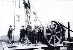 Natural gas miners and their drill, near Kokomo, Indiana, c. 1885