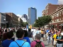 Indy Pride is a nonprofit 501(c)(3) organization based in Indianapolis, Indiana. It is a community-based, non-profit organization that seeks "to unite and serve its members and the LGBTQ community of Central Indiana through leadership development, educational and support programs, and community events that achieve inclusivity, equality, strong community connections, and awareness of LGBTQ issues."[5] The organization started in 1995 as the coordinator of the city's annual gay pride parade and event—Indy Pride Festival—but later grew into an umbrella for multiple LGBT community entities, including the Chris Gonzalez Library and Archives, Indy Bag Ladies, and Indianapolis LGBT Film Festival.[6]