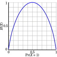 The special case of information entropy for a random variable with two outcomes is the binary entropy function, usually taken to the logarithmic base 2, thus having the shannon (Sh) as unit: