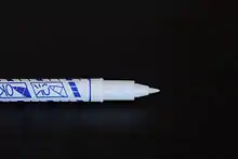 The eradicator only works with certain inks. Erasable inks of various colors exist, but royal blue is the most common. After applying the eradicator, erasable ink cannot be applied in the erased area of the paper, where the chemicals remain. For this reason, eradicators usually include a permanent blue felt tip that allows the user to write in the erased area.