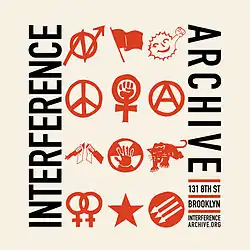 In addition to its primary purpose as an archive and library, Interference Archive also functions as a multipurpose community center, gallery, and events space.[2][5] Past events and exhibitions have covered prison reform,[14][15] the Asian American movement in New York,[16][17] underground newspapers,[18] the anti-nuclear movement,[19] and Art+Feminism edit-a-thons.[20]