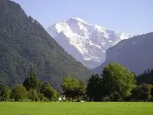 Until 1891, Interlaken was known as Aarmühle.[4] The convent of the Augustinian Canons was built around 1133 when it was mentioned as inter lacus Madon and lasted until 1528.[5] The mill on the left bank of the Aare was first mentioned in 1365 as Amuli, while the town on the right bank was mentioned in 1239 as villa Inderlappen.[4]