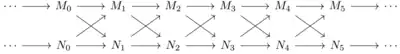In topological data analysis, the interleaving distance is a measure of similarity between persistence modules, a common object of study in topological data analysis and persistent homology. The interleaving distance was first introduced by Frédéric Chazal et al. in 2009.[1] since then, it and its generalizations have been a central consideration in the study of applied algebraic topology and topological data analysis.[2][3][4][5][6]