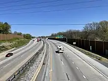 I-81 enters Pennsylvania at the Maryland state line about 13 miles (21 km) south of Chambersburg; it also has its first exit at the state line, junctioning with Pennsylvania Route 163 (PA 163) there. In Chambersburg at exit 16, it meets U.S. Route 30 (US 30; the Chambersburg Pike to Gettysburg). About a mile (1.6 km) north of Carlisle at exit 52, it meets US 11, which connects to the Pennsylvania Turnpike/I-76 (halfway between Philadelphia and Pittsburgh), since I-81 has no direct interchange with I-76.[3][4] The stretch of US 11 connecting I-81 to I-76 is known locally as the "Miracle Mile" since it contains plenty of traveler services including restaurants, gas stations, lodging, truck stops, and shops.[5] From here, I-81 travels in an almost precisely eastwest direction for the next 37 miles (60 km) (until exit 89). At exit 59, it has an interchange with the western terminus of PA 581. I-81 becomes the Capital Beltway from exit 59 to exit 70. At exit 67, the road comes to a stack interchange with US 22 and US 322; US 322 merges with I-81. Exit 70 is the eastern terminus of the US 322 concurrency and the northern terminus of I-83 and is located in Colonial Park. For the entire segment between the Mason–Dixon line and I-78, I-81 runs through the Great Valley. North of Harrisburg between I-83/US 322 and I-78, the highway passes near Hershey and Fort Indiantown Gap.[3][4]