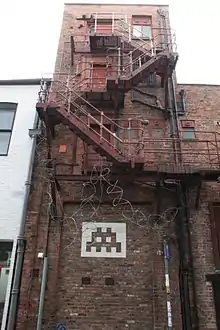 One of Invader's aliens (MAN 47) on a wall in Manchester, England, installed in 2004[2]