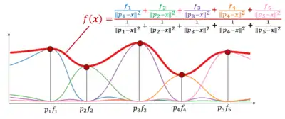 Given a set of sample points , the IDW interpolation function is defined as: