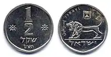 5 new agorot 18.5 0.9 The state emblem, "Israel" in Hebrew, Arabic and English