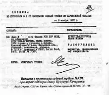 Until recently Kucherenko's true date of death was not officially known. Soviet sources such as the Soviet Encyclopedia stated that he died in 1943 in Kharkiv during the German occupation. Recently, it has become known that Kucherenko was arrested and after a period of eight months of prolonged torture was finally shot by the NKVD in 1937. His body was buried in a mass grave on the territory of the KGB recreational facility in the area of Piatykhatky on the outskirts of Kharkiv.