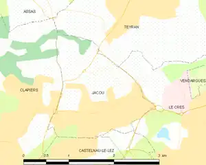 Jacou (French pronunciation: [ʒaku] ⓘ; Occitan: Jacon) is a commune in the Hérault département in the Occitanie region in southern France. Located on the outskirts of Montpellier, it is situated around 7 km (4.3 mi) north of the Montpellier city centre.