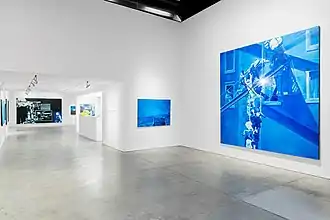 Jacques Monory (25 June 1924 – 17 October 2018) was a French painter and filmmaker whose work, highly influenced by photography and cinema, is an allegory of the contemporary world with a focus on the violence of everyday reality. His canvases evoke a heavy atmosphere, pulling subject matter from modern civilization through the lens of his signature monochrome color blue.