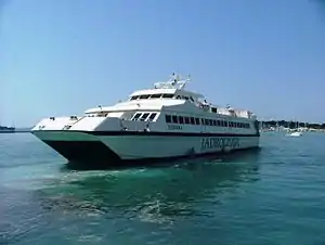 Jadrolinija is a Croatian sea shipping company. It is a state-owned company and its main mission is connecting Croatian islands to the mainland by operating regular passenger and cargo transport services. The company mainly operates car ferries on domestic routes along the Croatian coast, as well as international routes across the Adriatic Sea to Italy (to ports at Ancona and Bari).[1]