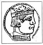 Silver coin of James II of Cyprus showing him on horseback on one side and Jerusalem Cross on reverse. Legends: IACOBS DEI G / R IERUS CIPRI ET ARMIA