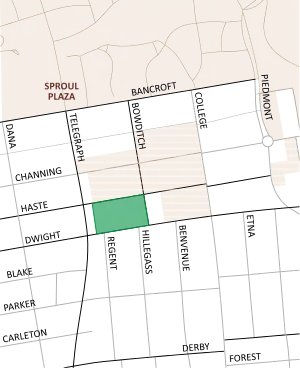 ![]() The green area represents People's Park and the brown patterned area represents University of California, Berkeley property. | |||