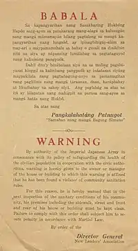 Kintanar, Thelma B.; Aquino, Clemen C. (2006). Kuwentong Bayan: Noong Panahon Ng Hapon : Everyday Life in a Time of War. UP Press. p. 564. ISBN 978-971-542-498-1. Retrieved 24 March 2013. - 1 2 "Philippines Map". American Experience. WGBH. 1999. Archived from the original on 26 December 2013. Retrieved 24 March 2013.
