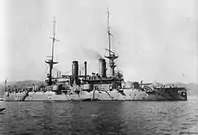 The Russian battleship Poltava (Russian: Полтава) was one of three Petropavlovsk-class pre-dreadnought battleships built for the Imperial Russian Navy in the 1890s. The ship was transferred to the Pacific Squadron shortly after completion and based at Port Arthur from 1901. During the Russo-Japanese War of 1904–1905, she participated in the Battle of Port Arthur and was heavily damaged during the Battle of the Yellow Sea. She was sunk by Japanese artillery during the subsequent siege of Port Arthur in December 1904, but was raised by the Imperial Japanese Navy (IJN) after the war and renamed Tango (丹後).