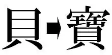 The ideogram for shell () was incorporated into the ancient character for "coin"/ "treasure" () in Japanese (right).