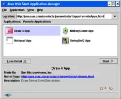 In computing, Java Web Start (also known as JavaWS, javaws or JAWS) is a deprecated framework developed by Sun Microsystems (now Oracle) that allows users to start application software for the Java Platform directly from the Internet using a web browser. The technology enables seamless version updating for globally distributed applications and greater control of memory allocation to the Java virtual machine.