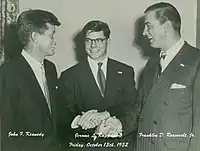 In the early 1950s, Rappaport quickly emerged as one of Boston's best-known political leaders.[10] The peak occurred when Rappaport succeeded Congressman John F. Kennedy in receiving the Massachusetts Jaycees "Distinguished Service" award as Massachusetts' most Outstanding Young Leader for 1952.[11] Kennedy's award was one of many steppingstones on the road to his becoming a United States Senator. Rappaport's acceptance speech in January 1953 was mostly geared towards inspiring wealthier and more seasoned local businessmen to invest everything they could in Boston's then-languishing economic development program, and "to give more time, energy, and thought to community affairs."[12]