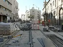 - 1 2 Guttman, Lior (June 15, 2010). "Track-Laying Stage in Jerusalem Light Rail Completed". Calcalist (in Hebrew). Retrieved June 16, 2010.