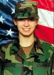 Lynch was born on April 26, 1983 in Palestine, West Virginia, the second child and first daughter to Deidre Lynch and Gregory Lynch, Sr.[4] Her family could not afford to send her to college; her older brother had to drop out for financial reasons as well. Searching for a way to pay for the children's educations, the Lynch family met with an army recruiter in the summer of 2000 when Lynch was seventeen and still attending high school.[5] "He did not lie to the kids," her mother said, "he said there was always the possibility of war in the future." "But at that time it was before September 11, and there was no terrorism," Lynch recalls, "so we were like, 'that would never happen to me.'"[5] On September 19, 2001, Lynch entered basic training at Fort Jackson, South Carolina. She later completed Advanced Individual Training for her Military Occupational Specialty as a unit supply specialist (MOS 92Y) in the Quartermaster Corps at Fort Lee, Virginia.