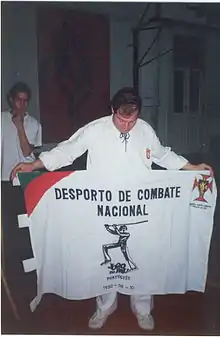 During the 19th century, jogo do pau was brought to Lisboa by northern masters, resulting in an amalgamation with the technique of the Gameirosabre, growing into a sports competition, removed from actual combat.[2] It was practiced in clubs such as the Ginásio Clube Português and the Ateneu Comercial de Lisboa.