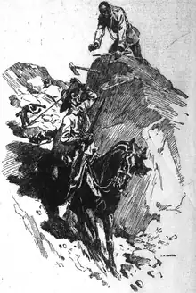 Colenbrander became Dunn's secretary in the later stages of the war and negotiated the surrender of Zulu Inkosi (chief) Zibhebhu kaMaphitha.[4] Colenbrander won Zibhebhu's trust and stayed on with him in Zululand as a secretary, trader and gunrunner.[4] In 1911 he recounted to a Washington Post correspondent an account of his service for Zibhebhu in defeating a raid from a neighbouring Zulu chief in 1879. Colenbrander said that he led a force of 17 mounted Zulu, that he had personally trained, against a force of 300 warriors. He stated that he killed 17 Zulu that day and while alone riding down the survivors was attacked by a single warrior. He was struck on the head by a war axe and, falling from his horse, broke his rifle. Colenbrander said he suffered another wound to his hands in warding of an assegai thrust and was struck three or four times again on the head, leaving the weapon embedded in his skull. He then struck the Zulu with the spur on his boot, bringing him to the ground, and releasing the assegai which he used to stab the warrior. Colenbrander then tried to mount his horse when the Zulu, who had survived, leapt to his feat and struck Colenbrander on the back of the head as he dived from the horse. Grappling together on the ground Colenbrander said he was able to use the bent assegai blade to kill the Zulu. He treated the wounds with disinfectant from his store and said that eight days later was in action again against another raid. The encounter left him with a 7 inches (180 mm) long scar down his left temple and cheek.[9]