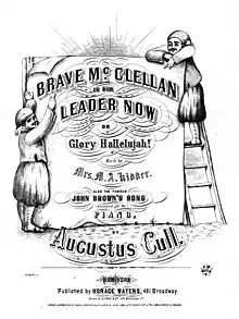 Sheet music for "Brave McClellan is Our Leader Now", with words by Mrs. M.A. Kidder, set to the Glory Hallelujah tune and also including "the famous John Brown's song", 1862